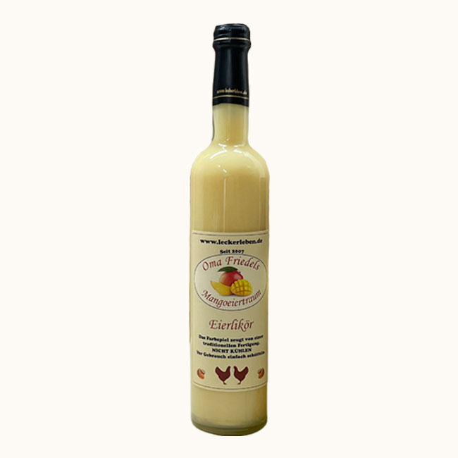 Feiner cremiger Eierlikör mit eine fruchtigen Mango Geschmack.